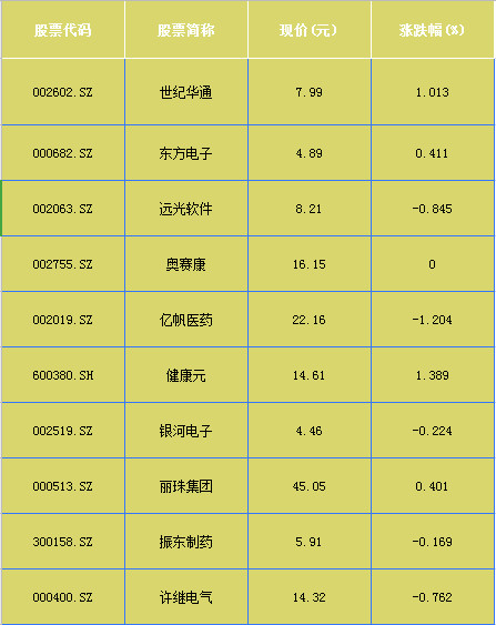 他们分别是★✿:世纪华通★✿、东方电子★✿、远光软件★✿、奥赛康★✿、亿帆医药★✿、健康元★✿、银河电子★✿、丽珠集团★✿、振东制药★✿、许继电气等