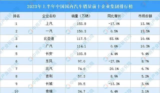 根据最新数据发布,2023年上半年我们国内汽车销量前十企业集团排行榜已正式公布。数据显示,这十家企业集团的销量合计达942万辆,同比增长0.4%,占据汽车销售总量的84.9%,尽管市场份额...…